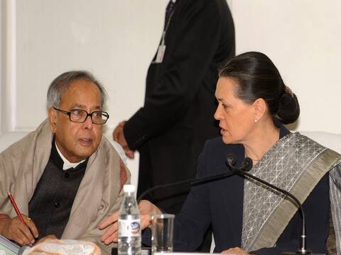 An old picture: Congress Party President and Chairperson of the UPA government, Sonia Gandhi (R) speaks with (then) Indian Finance Minister Pranab Mukherjee during the Congress Working Committee (CWC) meeting. | AFP Picture