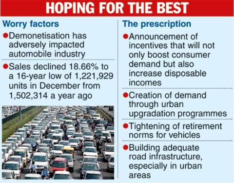 New Delhi: The automobile industry expects finance minister Arun Jaitley to provide incentives in the upcoming budget to boost consumer demand and increase disposable incomes, which could help jack up car sales. "Demonetisation seems to be playing out in ways that were not quite expected. This issue will stay with us for a while, both in reality and in the minds of potential buyers of automobiles. In a situation like this, it is important to have the government facilitate demand," said Kumar Kandaswamy, partner at Deloitte Touche Tohmatsu India. He said this could happen through both financial and non-financial methods. "It is important to speed up the plan to implement urban bus corridors and have demand created through urban upgradation programmes. Tightening and implementing retirement norms for vehicles can support demand creation. Strengthening the framework by which the vehicle aggregation models flourish would enhance consumption in that segment. "Demand could also be enhanced by building adequate road infrastructure, particularly in the urban areas," Kandaswamy said. Automobile sales fell 18.66 per cent to 1,221,929 units in December to touch a 16-year-low from 1,502,314 a year ago. The sales figure includes two- and three-wheelers along with passenger and commercial vehicles. K.N. Radhakrishan, president and chief executive officer of TVS Motor Company, expects the government to "introduce balanced economic measures, which will enhance ease of doing business within the country, boost consumer demand and catalyse economic growth. Therefore, in our view, the finance ministry must minutely evaluate these crucial economic contributors and lay necessary thrust on each one of them to give further impetus to growth and enhance disposable incomes and boost spending." Analysts and industry players said the sector would revive if major sops were announced in the budget to increase the purchasing power of consumers. "The Union budget will undoubtedly be of great importance to the automobile industry. As 2016 was a shaky year for the automobile industry because of demonetisation, the industry is still trying to cope with the situation. "The industry pins hopes on the budget to boost consumer sentiments. There are expectations that the government will take measures to boost disposable income," said Shubh Bansal, co-founder and chief of marketing & growth at Truebil - a virtual marketplace for pre-owned cars.