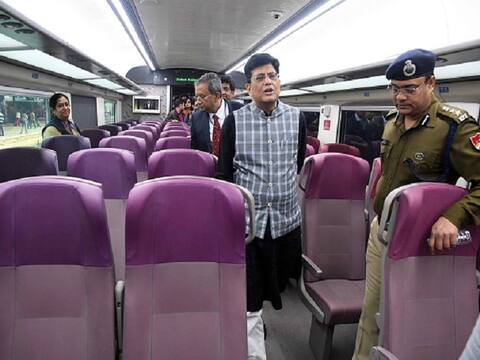 Railway Minister Piyush Goyal inspects the country's fastest T-18 train, scheduled to run between New Delhi and Varanasi railway stations in New Delhi. (File Photo/ Getty)