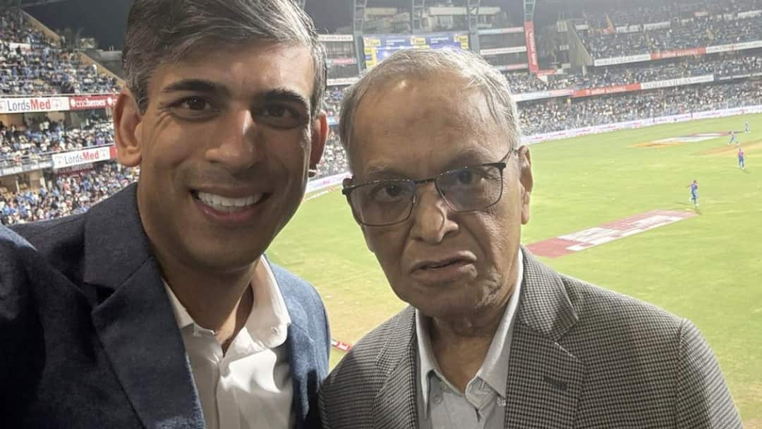 Former UK Prime Minister Rishi Sunak was seen enjoying the fifth T20I match between India and England at Mumbai's iconic Wankhede Stadium. He was accompanied by his father-in-law, Narayana Murthy, the co-founder of Infosys.