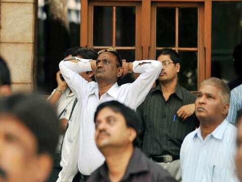 Investors watch the budget speech in Parliament as it is shown on the giant screen outside the Bombay Stock Exchange (BSE) in Mumbai. (FILE PIC/AFP)