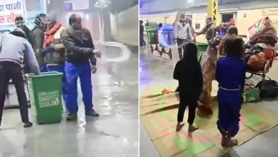 The incident has sparked outrage online, with many condemning the workers' actions. The video was shared by a social media user and is said to have taken place on December 25. The passengers in the video were waiting for their trains on platforms 8 and 9. After the staff splashed the water on the platform, the passengers had to vacate the area carrying their blankets.