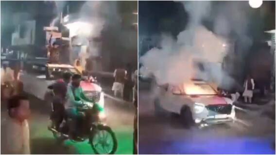 A car was set on fire after a man recklessly burst firecrackers through its sunroof during a wedding celebration in Uttar Pradesh's Sahranpur. The video has now gone viral on social media.