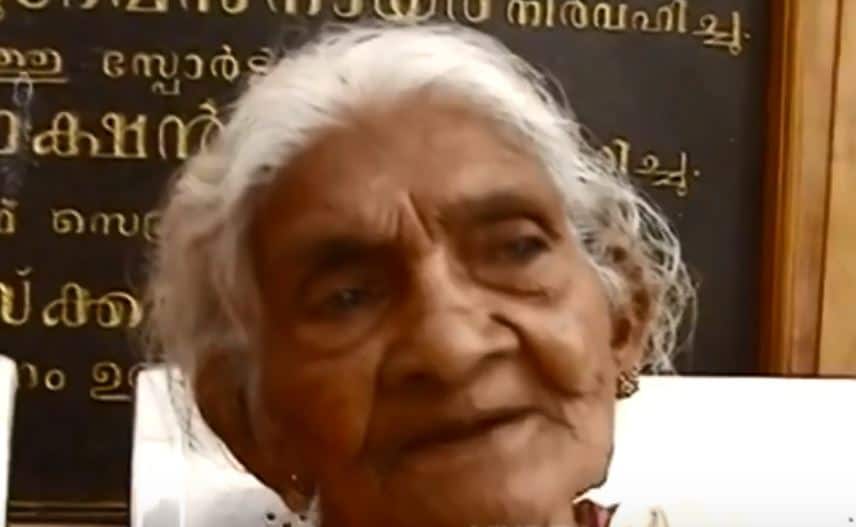 Karthyayini Amma, a 96-year-old woman from Kerala has topped the Kerala literacy exam by scoring 98 percent marks. (Photo grab: LiveTV Kerala)