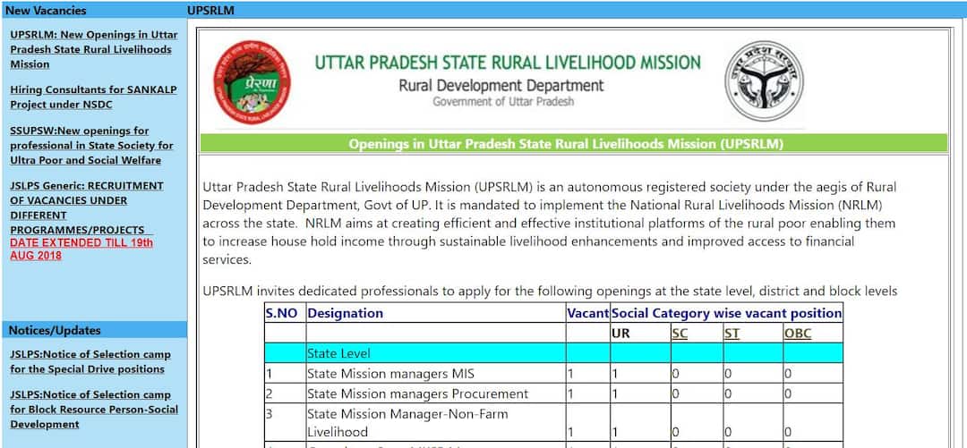 UPSRLM Recruitment 2018: How to apply