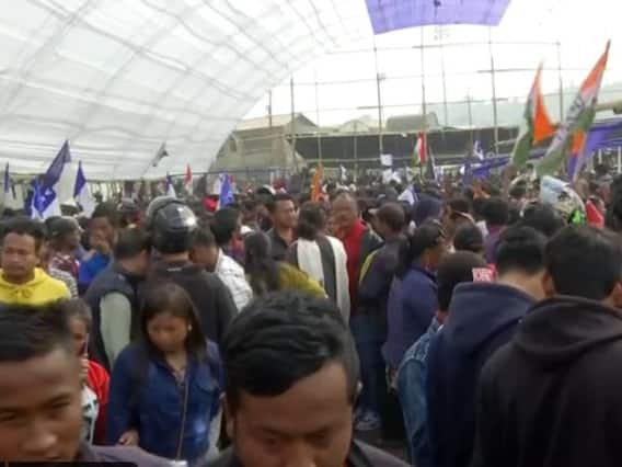 New Delhi: Amid the counting of votes in the poll-bound states of Meghalaya, Nagaland, and Tripura, supporters of various political parties have gathered outside Polo Ground in Shillong in Meghalaya on Thursday. According to Election Commission, Meghalaya CM Conrad Sangma's National People's Party is leading on 22 of the total 59 seats.