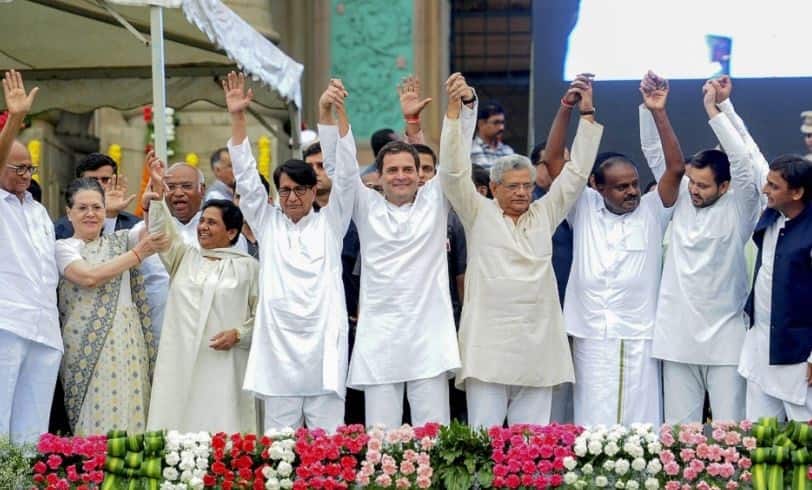 Opposition leaders showed unity at HD Kumaraswamy's swearing-in event at Karnataka in 2017. / Image: PTI