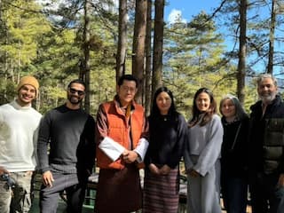 Mira Rajput shared the picture set, "Bhutan : The People’s Kingdom. So grateful to have met His Majesty The King @kingjigmekhesar and Her Majesty The Gyaltsuen of Bhutan and spent time on many occasions during our stay.. Their warmth, humility and generosity envelopes one into the comfort of chatting and interacting candidly."