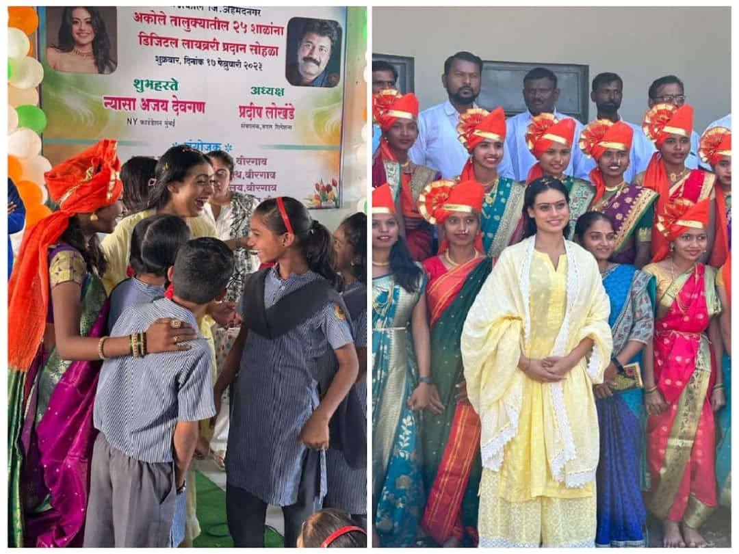 Nysa dedicated the digital library and handed out books and sporting equipment to students, as per reports. Nysa was spotted wearing a yellow salwaar and a bindi in photos that circulated on the internet. She interacted with the children and took pictures with them.