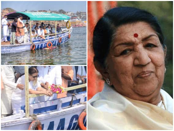The ashes of the legendary singer Bharat Ratna, Lata Mangeshkar were immersed in the Ganga River by her family members in Varanasi on March 8,2022.