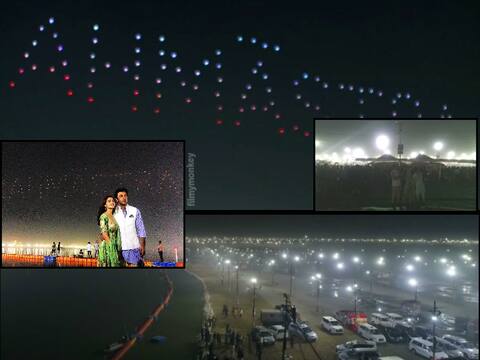 Brahmastra Logo OUT: Video! Flylights launched by Ranbir-Alia at Kumbh put up a spectacle in the sky unveiling the logo!