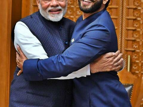 Ranveer Singh gets a Jaadoo ki Jhappi from PM Narendra Modi