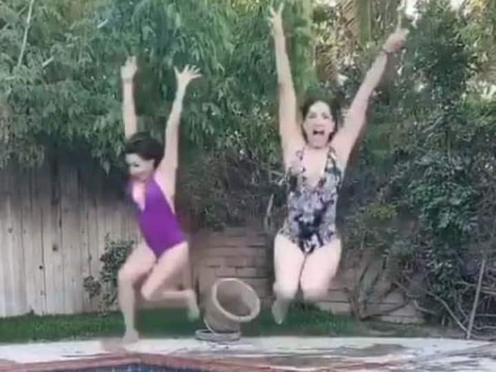 Bollywood actress Sunny Leone who is currently quarantining in Los Angeles with her family during the ongoing COVID-19 pandemic and is having a gala time there. The diva has been giving glimpses of her daily life to fans through social media. And on Tuesday, Sunny took to her Instagram handle to share a fun boomerang video with her girl pal. In the video, Sunny can be seen taking a dip in the pool with her friend and she is wearing a stylish black and white monokini. The actress, who is currently isolating in the US with her family, had recently shared a video where she is seen jumping on a trampoline. In the clip, she is seen wearing a black T-shirt paired with blue jeans. A couple of days back Sunny's friend too had shared a pics of the two pals chilling in pool. On work front, Sunny will next be seen in "Veeramadevi" and "Koka Kola".