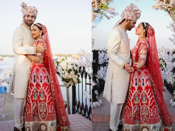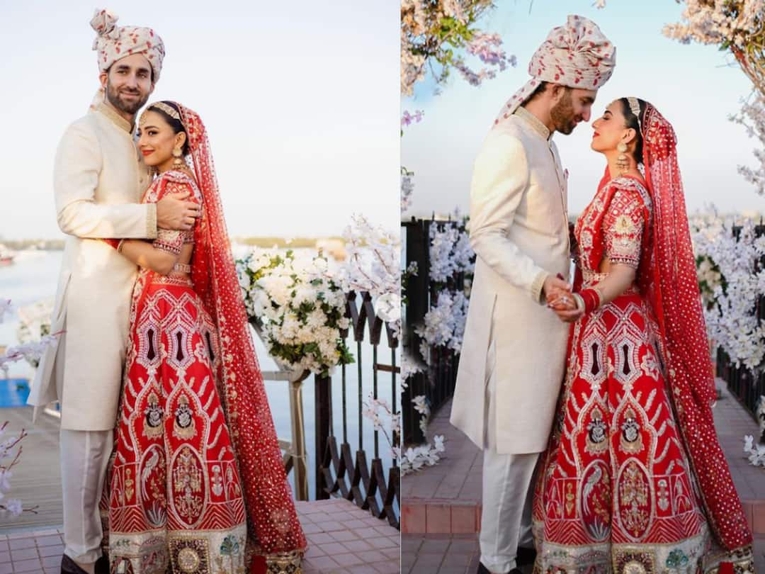 New Delhi: Pakistani Actress Ushna Shah recently got hitched to Golf Player Hamza Amin and the photos and videos of their dreamy wedding are doing the rounds on social media. The actress herself shared a couple of pictures and videos on her Instagram, where she can be seen in a gorgeous red lehenga, designed by Pakistani brand Warda Saleem, lovely jewellery, mehendi-clad hands and a matching red veil, while Hamza is dressed in an ivory sherwani with a safa.