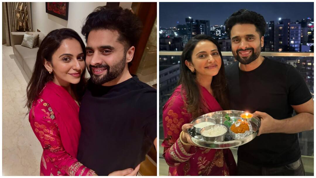 The 'Doctor G' actress also used social media to drop a few glimpses from the celebration. Posing in a beautiful red-salwar kameez, Rakul was accompanied by her husband, Jackky Bhagnani, and her mother-in-law.