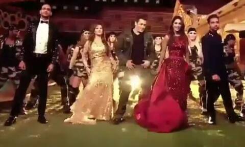 Bigg Boss host Salman Khan, contestants Shilpa Shinde, Hina Khan, Vikas Gupta and Puneesh Sharma