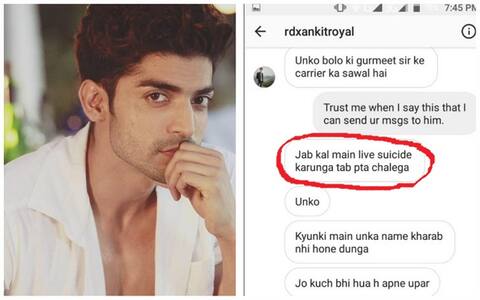 Superstar Shah Rukh Khan's movie 'Fan' showcased Bollywood stars' crazy fans as to what extent they can go to please/threaten their favourite star. Not only in reel life, but it surely happens in real life too. Latest incident is of TV actor Gurmeet Choudhary who is facing some trouble with a fan. (TV actor Gurmeet Choudhary/Image- Twitter) A lunatic is apparently blackmailing Gurmeet and threatening him that either he will kill the actor or will commit suicide. Situation got serious and Gurmeet had to post some threatening messages on his social media account. (Image- Twitter/Gurmeetchoudhary) The actor wrote on Twitter, “Am receiving concerned calls nd msgs from fans all over that some person wants to commit suicide to prove his fandom!! But I request I love you all and care but this kind of behaviour is loathed extremely as well as creates trauma. Apparently this guy in the pic wants to kill me (sic).” 'Taarak Mehta Ka Oooltah chashma' actress Munmun Dutta also expressed her anger over the fan's insane behaviour and asked Gurmeet to inform the police if he feels so. She replied on Gurmeet's post saying, “Wat the heck is going on ? Looks like a classic case of attention seekers. Don’t worry about it at all Guru and Debi. Tag Mumbai police incase he acts too smart. Someone ‘s deranged, lunatic behaviour is NOT ur responsibility. And so called fans shud know where to draw the line. This isn’t the first time that a Bollywood star has been threatened by a crazy fan. A few days back, Uday Chopra was threatened that the fan will destroy his family. In another incident, a stalker followed Sonu Ke Titu Ki Sweety actor Kartik Aaryan to his house.