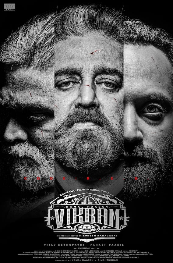 Uploading the poster featuring close-ups of the three actors, Kamal captioned: "Only valour should wear the crown' I dare again to render before you the best of our talents. Like before, grant us victory!! Vikram."