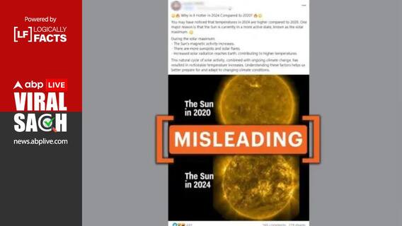 A Facebook user has claimed in a viral post that the year 2024 is hotter than 2020 because “the sun is currently in a more active state,” known as the solar maximum, as a result of which “increased solar radiation is contributing to higher temperatures.” The user further claimed that “this natural cycle of solar activity, combined with ongoing climate change, has resulted in noticeable temperature increases.” An archived link of the post can be seen here.