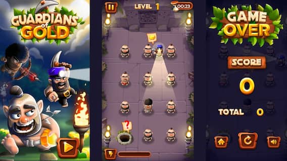 1. Go to the Games Live website. 2. Search for Guardians of Gold and launch the game.3. Click the Play the Game button.4. Begin with the tutorial to learn the game mechanics.5. Once confident, tap to start playing and enjoy the challenge.