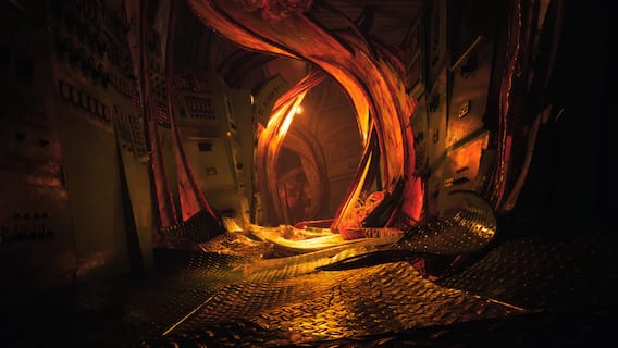 In the game, players assume the role of Caz, who navigates through the rig's engineering section. The narrow hallways, low ceilings, and oppressive heat and moisture create a sense of entrapment. The absence of windows adds to the disorientation, while the mixture of water, oil, rust, and dirt underfoot heightens the tension. Players are made to feel the urgency to reach the open air, knowing something unknown lurks in the shadows.