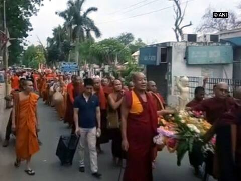 In the holy city of Gaya, around 1000 Buddhist monks from countries all over the world took out a peace march to mark the occasion.