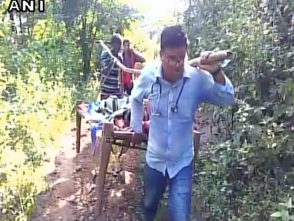 Setting an example for others, a young doctor carried his pregnant patient from an inaccessible village to a hospital on a cot. Faith on doctors!