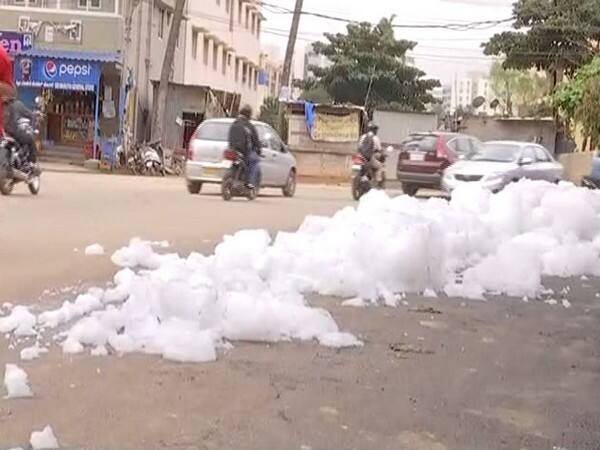 "This foam problem has been there for a very long time. Due to heavy rain for past two days, the water level has increased and now the foam has overloaded the whole bridge. Because of this, it is difficult for commuters to drive on the road. The residents are also trying hard to solve this matter," a local resident Jitesh told ANI.
