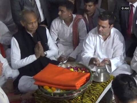 He along with Congress General Secretary in-charge Ashok Gehlot and Gujarat Congress President Bharatsinh Solanki performed puja at the temple.