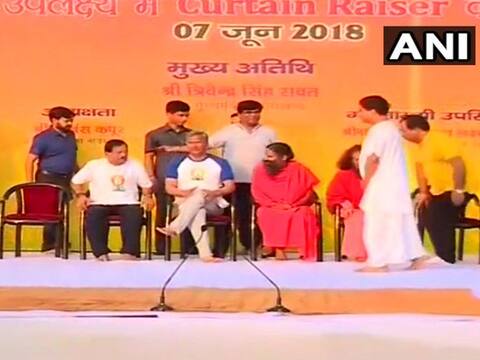 Ramdev and the Chief Minister along with other participants also rehearsed for the International Yoga Day, which will be celebrated all across the globe on June 21.