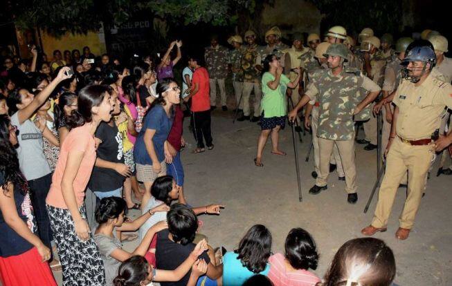 Cops lathi charged students after they staged a protest against eve-teasing of a female student. / ABP News image