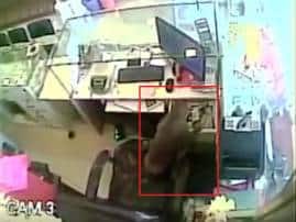 Guntur (Andhra Pradesh): Monkey enters into jewelry shop in Guntur, Andhra Pradesh and jumped on a worker, who escaped the animal's attack. The monkey then sauntered to the cash drawer only to take away a bundle of Rs.10,000 cash and then running away even as the other workers tried to catch him in vain. The entire, 38-second clip is recorded in the CCTV cameras installed in the jewelry shop.