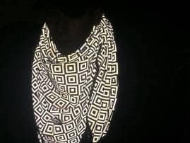 This scarf is made up of extremely light reflecting particles that absorb all the light around it, leaving the environment around it thick black after photographing with flash.