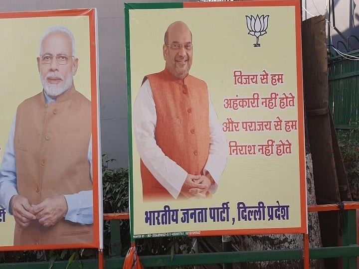 Delhi election results 2020: It seems the Bharatiya Janata Party has thrown in the towel as Delhi Assembly poll trends showed that the Aam Aadmi Party (AAP) is winning with a thumping majority, the saffron party has put up posters at its Delhi party office saying that it is not discouraged by defeat. A poster in the Delhi BJP office has a photo of Union Home Minister Amit Shah and reads 'Victory doesn't makes us arrogant, defeat doesn't demoralise us', reported IANS. As per trends at 12:30 pm, AAP surged ahead of BJP towards a landslide victory. The Kejriwal-led party was leading in 58 seats while BJP was ahead in mere 12 seats. Congress hadn't opened its account by then. Delhi BJP leader Manoj Yadav said that this is an old poster and it should not be linked to the Delhi Assembly election results. Earlier, Delhi BJP president Manoj Tiwari said he is not nervous as he knows that the polls will have something good for the party.