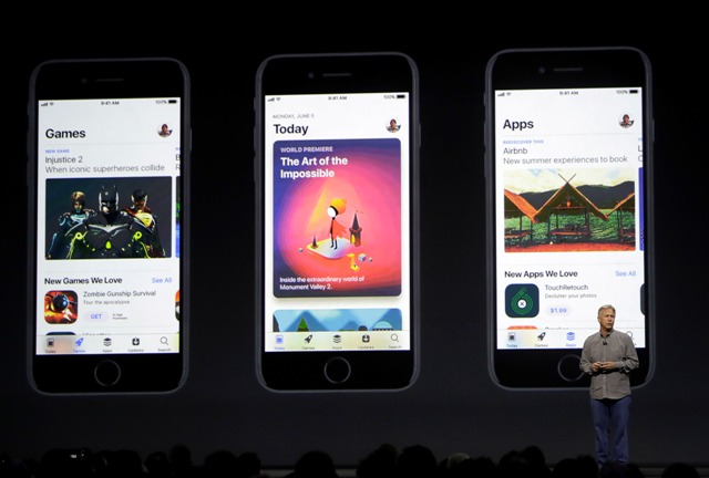 Phil Schiller, Apple's senior vice president of worldwide marketing, speaks during an announcement of new products at the Apple Worldwide Developers Conference in San Jose, Calif., Monday, June 5, 2017. (AP Photo/Marcio Jose Sanchez)