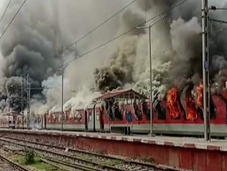 The officials said the coaches of seven trains have so far been set ablaze by the protestors.