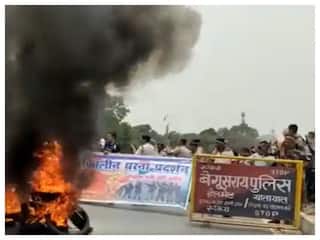 Army aspirants on Thursday at Kaimur Bhabua Road railway station in Bihar set the Intercity Express on fire, and ransacked the station platform. Earlier on Wednesday, army aspirants stopped train and road traffic in numerous districts of Bihar in protest of the "Agnipath" programme, news agency PTI reported.