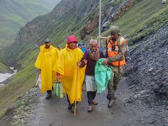 "Situation is under control, rains are still going on. Looking at the hazard level, the Amarnath Yatra has been halted temporarily due to the area being inundated. If the weather remains normal and makeshift arrangements are made, then the yatra can be resumed tomorrow," Vivek Kumar Pandey said.