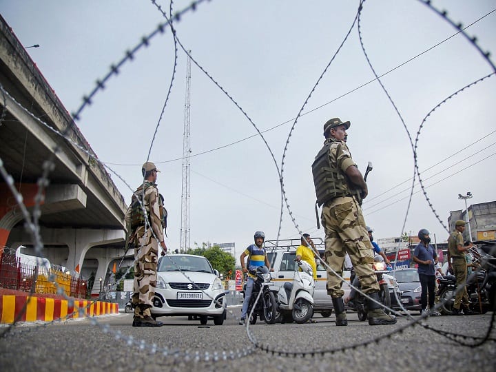 Jammu: Security personnel stand guard during restrictions, in Jammu, Monday, Aug 05, 2019. Restrictions and night curfews were imposed in several districts of Jammu and Kashmir as the Valley remained on edge with authorities stepping up security deployment. (PTI Photo)