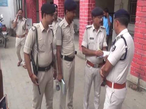 Policemen probing the incident in Hajipur, Bihar.