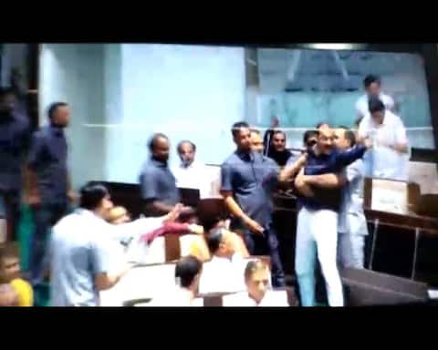 As per details available, Congress MLA Vikram MLA broke a microphone as MLAs from parties came to blows inside the House.