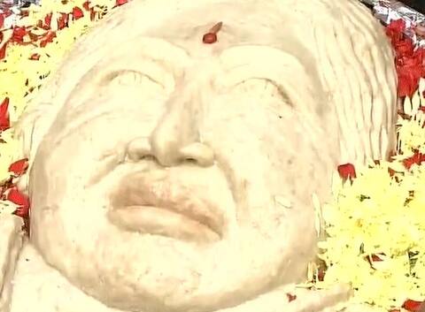 New Delhi: On Tuesday, an Idly weighing 68 kgs was made by the people of Chennai in the form of the late Tamil Nadu Chief Minister J Jayalalithaa's face at Marina Beach. Tamil Nadu's ruling AIADMK had said 77 persons died due to shock after hearing about the illness and later the demise of Chief Minister J. Jayalalithaa and announced a solatium of R. 300,000 to their families. Image Courtesy: ANI No one was oblivious to the love the people of Chennai had for their late Chief Minister who passed away on the evening of December 5 after suffering cardiac arrest. However, the 68 kg idly signifies that the frenzy among her fans is still not over. Image Courtesy: ANI Jayalalithaa was fondly called 'Amma' meaning Mother by the party workers.