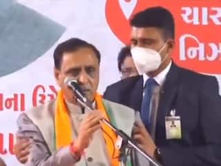 Rupani began to lose his stregnth further as he delivered his speech. A bodyguard who was standing behind tried to hold him but the CM collapsed surrounded by BJP leaders who had rushed to help.