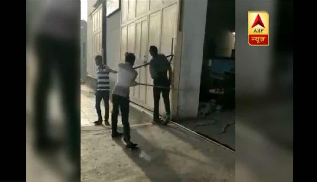 Rajkot: A 35-year-old man was brutally beaten death by five workers of an industrial unit in Shapar-Veraval adjoining the Rajkot city on Sunday. IMAGE: ABP News The Mukesh Vania, the man who was beaten to death, was suspected him of being a thief. He was picking garbage with his wife near the Industries. The footage of the incident went viral on social media sites. In the video, it can be seen that the man was tied and was mercilessly thrashed with belts. He later summed to injuries in the hospital.