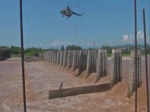 Jammu & Kashmir: Dramatic visuals showed Indian Air Force officials successfully managing to rescue two persons who were stuck near an under-construction bridge after a sudden increase in the water level of Tawi river this afternoon. In the first attempt, the ladder used by the air force personnel malfunctioned following which the two stranded men fell into the river but fortunately were able to swim and secure themselves from the raging water current. The two labourers stuck amidst rising water levels were airlifted by the IAF chopper safely in the second rescue operation. The rescue was cheered by locals and colleagues of the the stranded men. Reports say two other persons were also recused safely by the defence personnel earlier in the morning. Heavy rains have wreaked havoc in several parts of Jammu region, raising water level in major rivers, including in the Tawi, and leaving some low-lying areas submerged. On Saturday two siblings were washed away when they tried to cross an overflowing stream on their way home at Kameela village in Vijaypur area of Samba district, a police official was quoted by news agency PTI. Katra, the famous town which serves as the base camp for the pilgrims visiting Vaishno Devi shrine in Reasi district, recorded the highest 133.4 mm rainfall since Friday night, a metrological department spokesperson reportedly said.