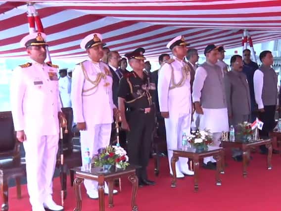 Chief of Defence Staff Gen Anil Chauhan, Navy Chief Admiral R Hari Kumar, Goa Governor PS Sreedharan Pillai, Goa CM Pramod Sawant, and other dignitaries are also present in the ceremony.