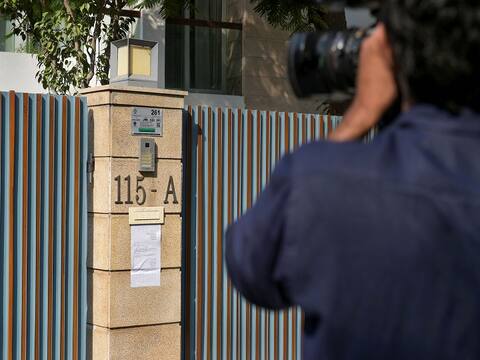 CBI notice pasted on the boundary wall of the former union finance minister and Congress leader P Chidambaram's residence, in New Delhi, Wednesday.