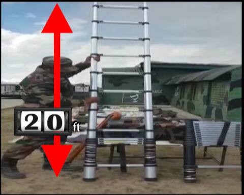 New Delhi: Army has recovered 20 ft folding ladders from militants, as it foiled their infiltration bid in Shallbattu LOC of Karen sector. The ladder was supposedly used in crossing the barbed wire border-fence. Four to five militants tried to cross over to the Indian side using the darkness of Friday night, but were stopped by the security forces. Firing from both sides continued for several hours which forced the militants to go back. They however left back some items at the LOC in their haste to flee. Among the items recovered were some grenades, food-items, and two folding ladders The ladder made up of light aluminum does not weigh more than 2-3 kgs and after folding it’s height reduces to 4 feet- an easy to carry around stuff. The ladder when unfolded can become as long as 20 ft, which can then easily aid the militanst to cross over the barbed wire fence on the border and reach to the Indian side because the average height of the fence wire is 10-15 fee. Two ladders were discovered which were apparently to be sued on both sides of the fence- one for climbing up and the other for getting down on the other side.