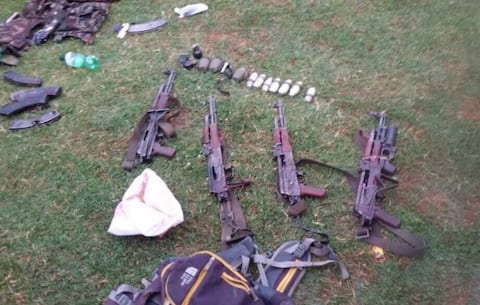 Weapons seized from the Four killed terrorists who were trying to carry out a suicide attack on CRPF camp at Sumbal in Bandipora of J&K. Photo: ANI