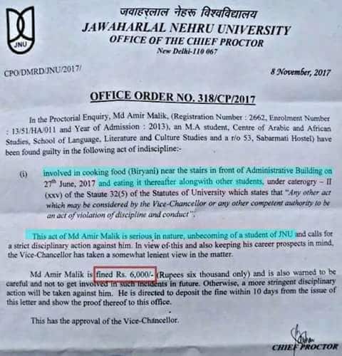 JNU fines 4 students for cooking biryani in campus
